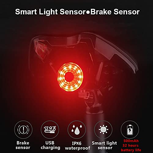 Fiets Achterlicht, Waterdicht LED Achterlicht,Remsensor Achterlicht, USB Oplaadbaar Fietsachterlicht, 7 Lichtstanden…