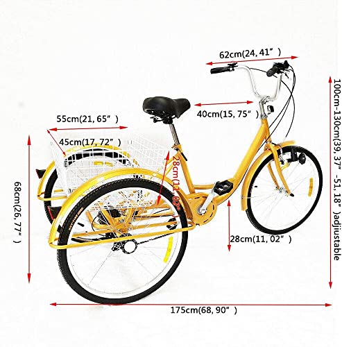 Deze traditionele driewieler met 6 versnellingen van 24 inch voor volwassenen met mand is speciaal ontwikkeld voor oudere mensen. Comfortabel voor oudere mensen om uit te gaan, kan ook sport, milieu en veiligheid bieden. Boodschappenmanden zijn eenvoudig om je groenten of fruit te dragen. Of je nu voor jezelf of als cadeau voor vrienden of ouders koopt, dit is een goede keuze om het te kopen.