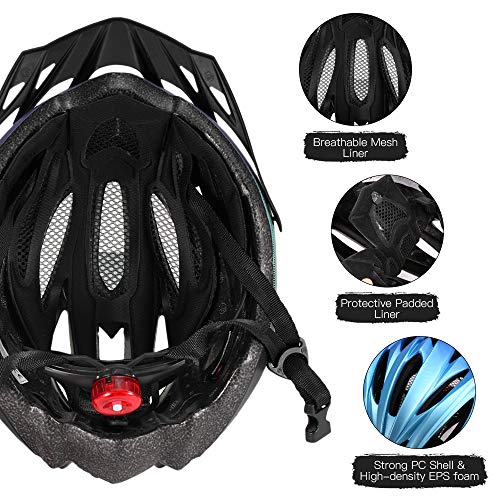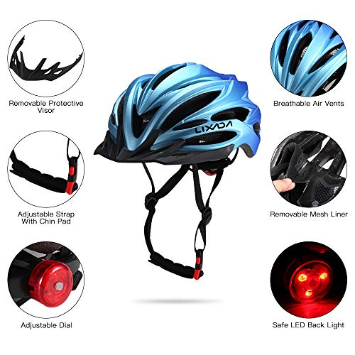 Specification: Lixada Fietshelm MTB-fietshelm met achterlicht en zonneklep ademend fietshelm voor vrouwen mannen