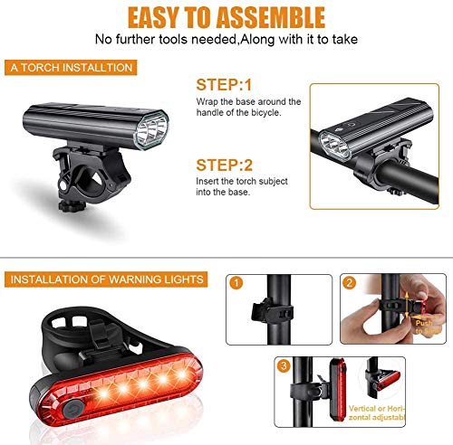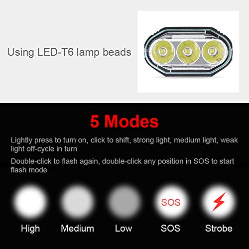 【 3 LED 3000 LUMEN OUTPUT】 De fietslamp is zeer helder, het maximale vermogen is 3000 lumen, en de drie LED-lampen bedekken een breed bereik, zodat u ‘s nachts kunt reizen en bredere gebieden kunt zien. Het is uitgerust met fietsenachterlichten om uw rit veiliger te maken.